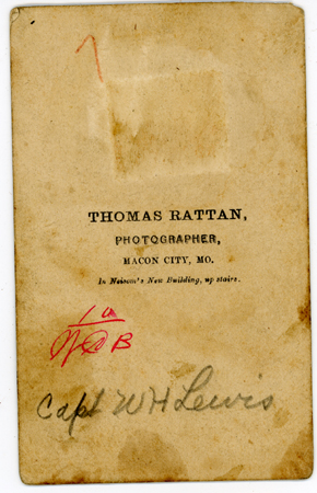 12. Captain Wm. H. Lewis, by Thomas Rattan, Macon MO, remnants of revenue stamp on reverse, circa 1864. (see illustration)